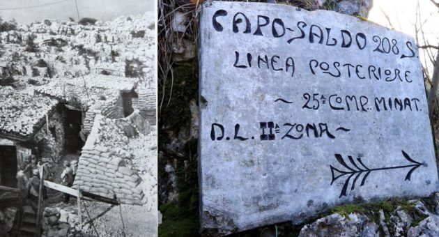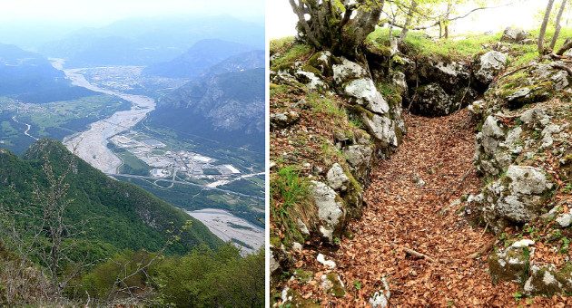 Visiteremo le loro tracce, ancora oggi riconoscibili con chiarezza sulla dorsale sommitale, da cui ben si individuano i siti dei combattimenti della ritirata del 1917.