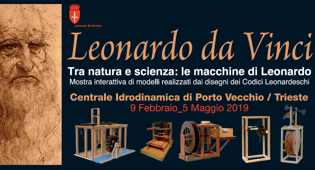 Inaugurata la mostra allestita alla Centrale Idrodinamica in Porto Vecchio a Trieste, dal titolo “Tra natura e scienza. Le macchine di Leonardo”, e aperta da sabato 9 febbraio a domenica 5 maggio 2019, sui modelli realizzati su disegni di Leonardo da Vinci dal professore di educazione Tecnica Girolamo Covolan dell’Associazione Avanguardia Cafe di Ferrara. Nel 2019 ricorre il cinquecentenario della morte di Leonardo da Vinci, indiscusso genio del Rinascimento, artista, ingegnere e inventore, icona dello scienziato a tutto tondo. Il mito di Leonardo da Vinci, immerso nello studio della natura e dell’uomo, è tutt’ora vivo e presente. In pieno contrasto con la visione ultra specialistica dello studioso contemporaneo, Leonardo seppe esprimersi ed eccellere nelle più svariate discipline e nei diversi campi del sapere.  Artista raffinato e poliedrico, le sue opere rappresentano ancora oggi i punti di forza dei musei in cui sono esposte. Così come altre città italiane ed europee, anche Trieste ha voluto ricordare la figura di Leonardo, accogliendo il progetto dell'Associazione Avanguardia Cafe con l'esposizione di alcune “macchine leonardesche” costruite dal professor Girolamo Covolan, insegnante di educazione tecnica, che ha individuato, nella costruzione dei modelli leonardeschi, uno strumento di didattica chiaro, di non complessa realizzazione, funzionale anche all'apprendimento scolastico. I modelli esposti sono realizzati su progetti del “Codice Atlantico”, la più ricca documentazione dei contributi di Leonardo alla scienza meccanica e matematica, all’astronomia, alla fisica, alla botanica, alla chimica e all’anatomia. Nella raccolta si trovano disegni di strumenti da guerra, macchine per volare o “prototipi” di  dispositivi meccanici e macchine utensili, progetti architettonici e urbanistici, purtroppo rimasti sulla carta, il tutto di grande valore didattico e di indubbia modernità e funzionale all'apprendimento scolastico. I suggestivi ambienti della Centrale Idrodinamica fanno da cornice alla mostra. I visitatori, non sono semplici “spettatori”, ma hanno l'opportunità di diventare parte attiva, toccando e manovrando le riproduzioni dei macchinari, con la sensazione di immergersi in un passato di straordinaria attualità, in cui i progetti cinquecenteschi si palesano come fonte di ispirazione per innumerevoli invenzioni tecniche dei giorni nostri. Tutte le domeniche, alle ore 11, visite guidate a cura dell'Associazione Italia Nostra alla mostra “Tra natura e scienza. Le macchine di Leonardo” con i modelli realizzati su disegni di Leonardo da Vinci. E' inoltre possibile prenotare visite su appuntamento, inviando una mail a: Questo indirizzo email è protetto dagli spambots. È necessario abilitare JavaScript per vederlo. Orario Mostra • da giovedì a domenica e festivi  dalle ore 10:00 alle ore 17:00 • visite guidate su appuntamento: Questo indirizzo email è protetto dagli spambots. È necessario abilitare JavaScript per vederlo. 340.2655192 • ampio parcheggio auto gratuito autobus linea 6 Prezzi Biglietti • Intero 4 € • Ridotto 3 € • Gratuito per bambini/ragazzi fino ai 19 anni compresi Info: Comune di Trieste